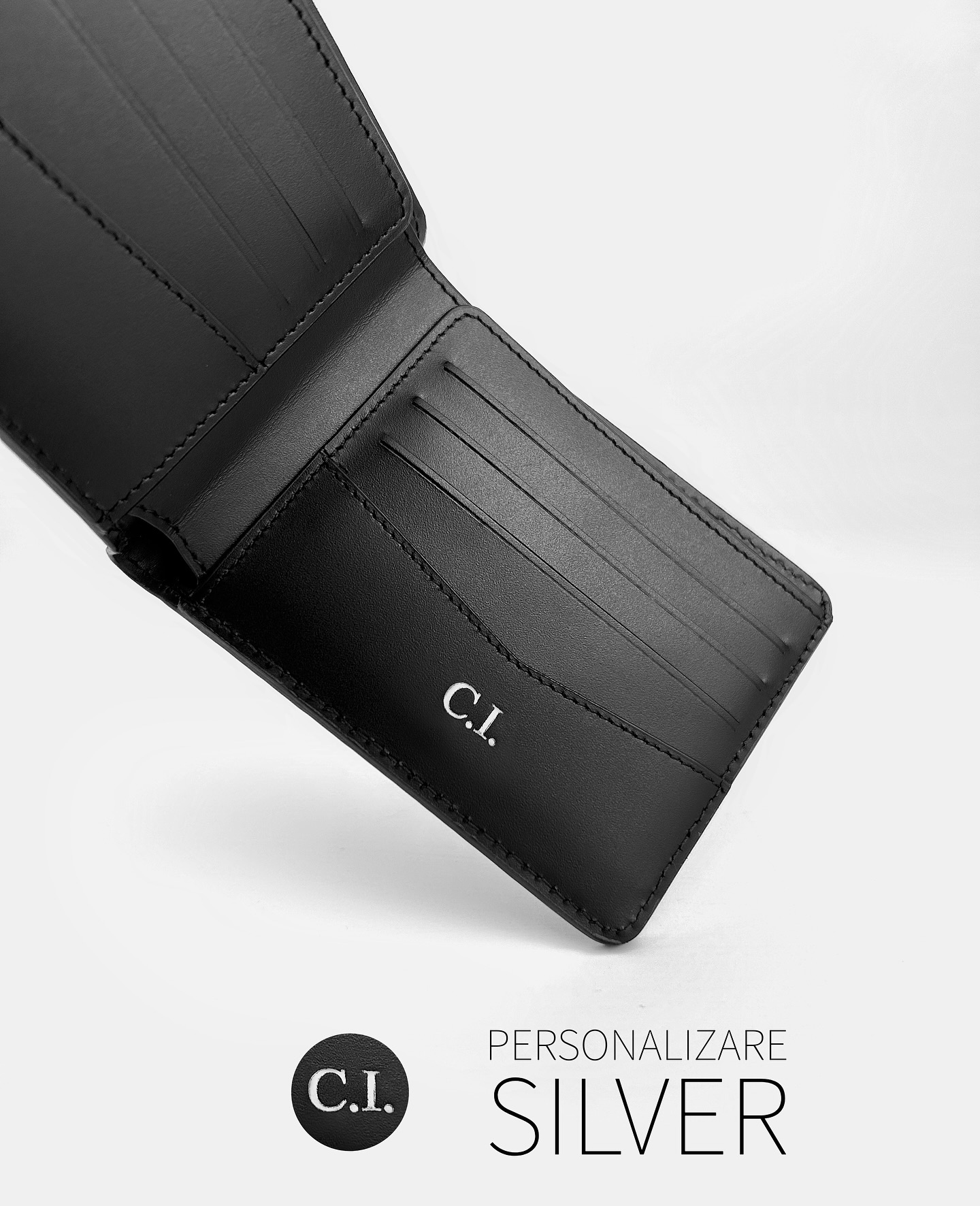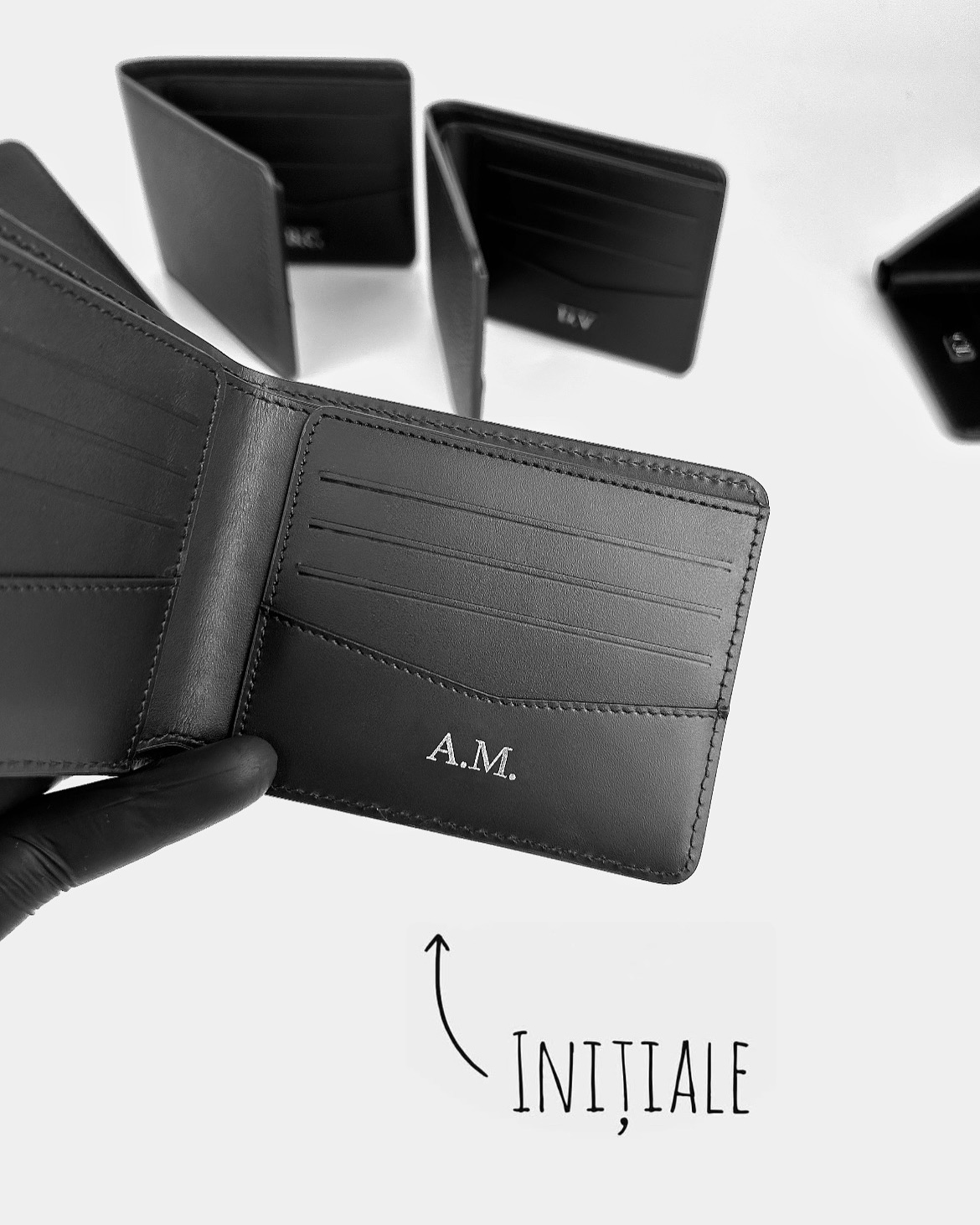 Portmoneu bifold din piele naturală de python, poate fi personalizat cu inițiale, oferind un accesoriu distinct și personal.